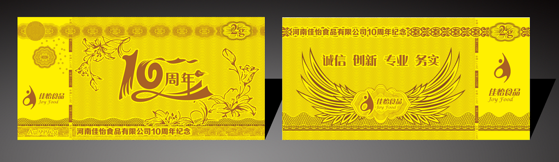 河南佳怡食品10周年紀念金鈔